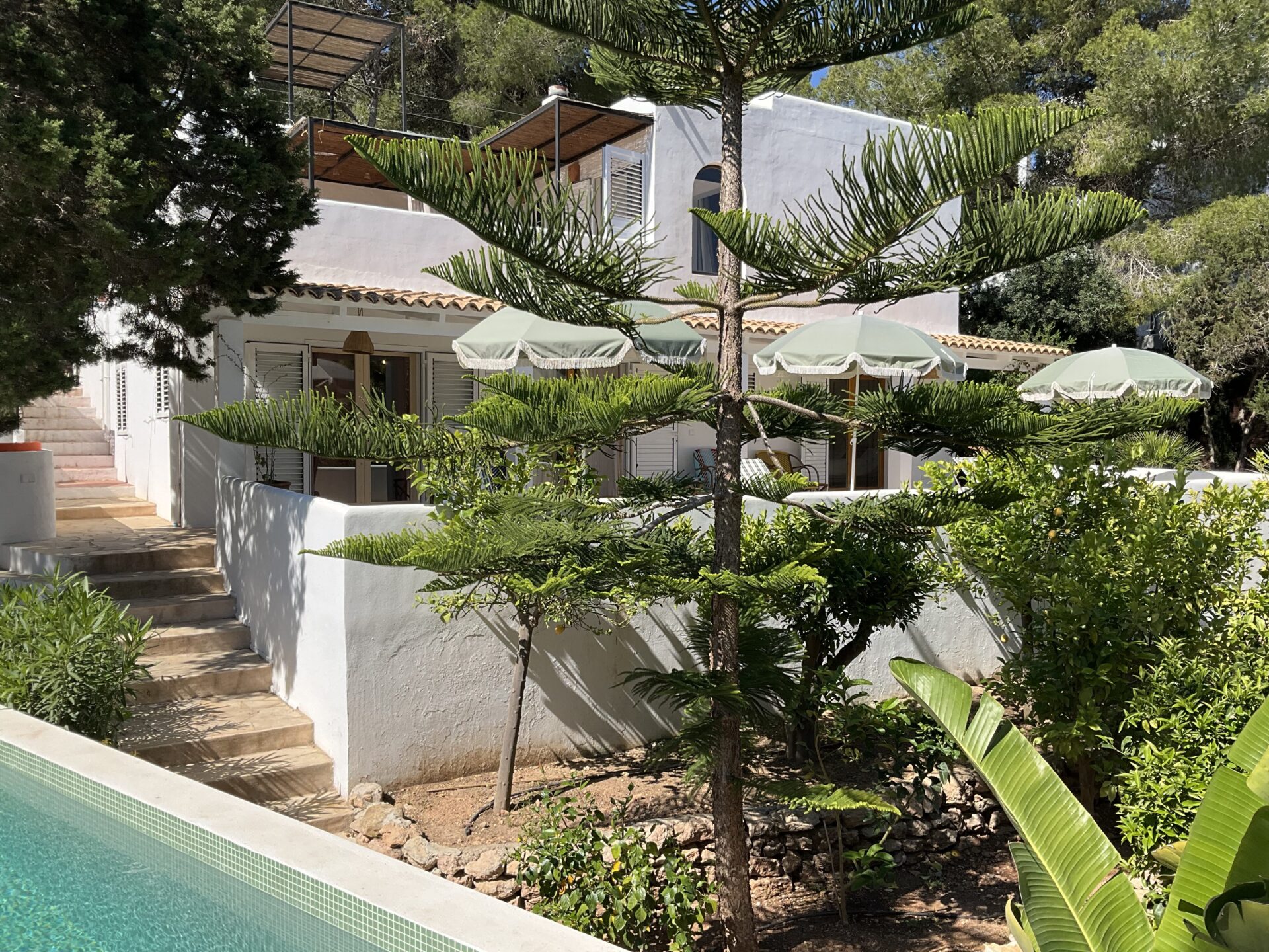 The setting is quiet and peaceful, creating a relaxed holiday atmosphere. The combination of pool, terraces and garden makes it suitable for enjoying Ibiza’s climate. Sea views from the top floor complete the property.