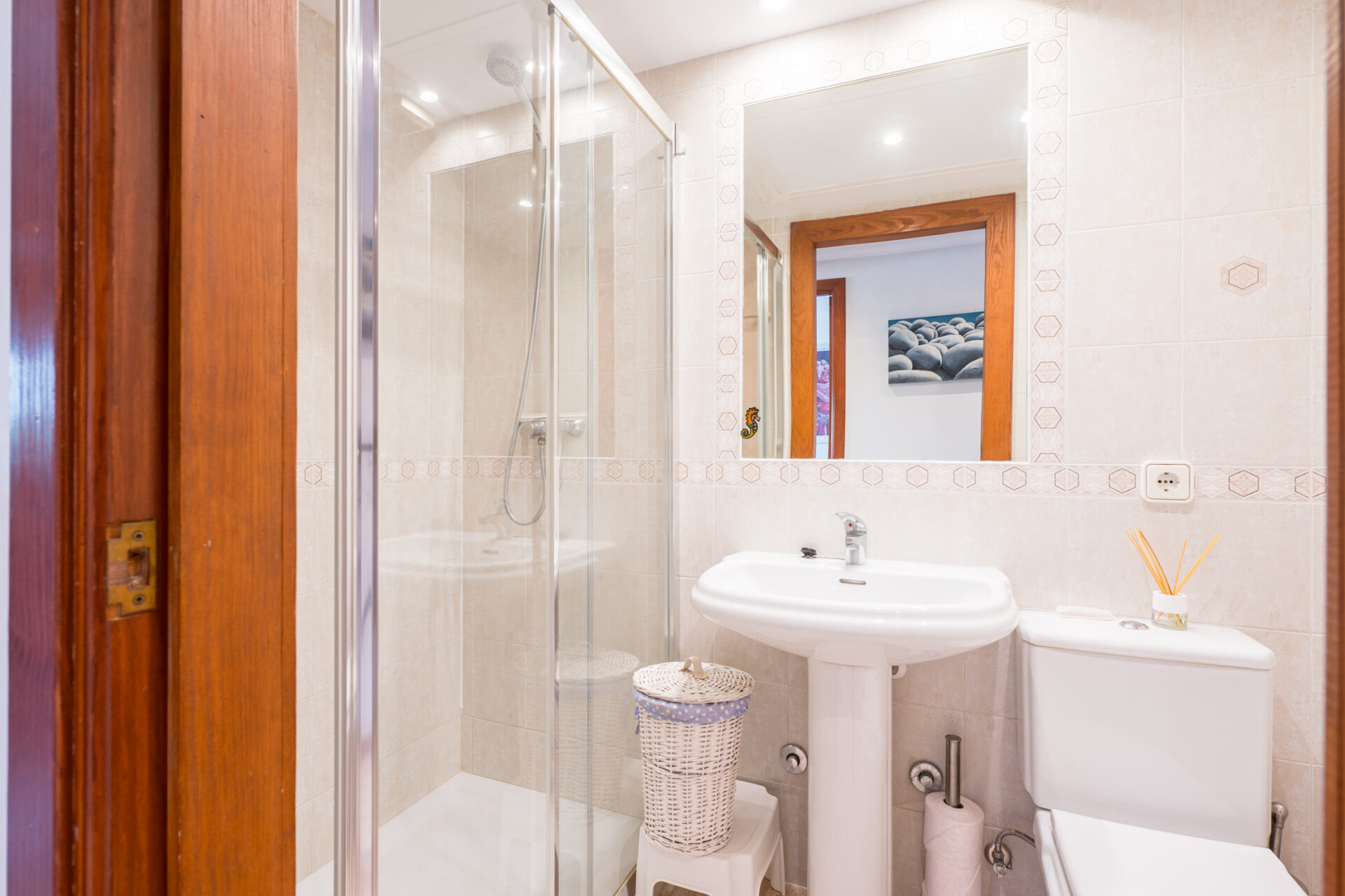 The building comprises only six neighbours, creating a quiet and residential atmosphere. The apartment is sold furnished and includes a private underground parking space, a 15 m² storage room, lift and wheelchair-friendly access from street level, a valuable advantage in this central location.
